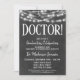 Une amusante invitation de docteur en tableau noir et blanc avec des lumières brillantes au sommet.