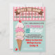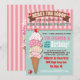 Une invitation à la fête d'anniversaire inspirée par un ancien salon de crème glacée avec une illustration de boules de crème glacée dans différents motifs empilés les uns sur les autres avec une typographie amusante, des auvents rayés, des bannières et des cerises sur un arrière - plan aqua vintage. Idéal pour un anniversaire ou un groupe de glaces. Illustration tirée à la main par McBooboo. Veuillez me contacter pour toute modification ou question personnalisée !