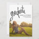 Un design moderne simple et charmant qui présente la photo de votre diplômé sur le devant avec tous les détails de la fête ou de la faire-part sur le dos. Elégant design de typographie noire à l'allure féminine lettrée à la main. Décontractée, contemporaine et belle façon de souligner la célébration de la remise des diplômes de votre fille.