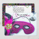 Masque de paillettes rose avec plumes et gobelet en argent.