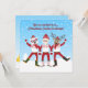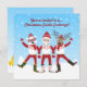 Invitation de Noël avec un imaginaire de Noël à thème moderne !imaginaire de Noël à thème moderne avec le Père Noël, Rudolph le cerf et un Ours polaire, main dans la main. Sur le dos, des cadeaux de Noël, de la neige blanche et des pins à neige et beaucoup d'espace pour une personnalisation facile du texte.