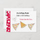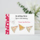 Une invitation à pizza party avec une bordure rouge blanche. Trois tranches de pizza délicieuses pour séduire les fêtards !