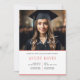 Invitation minimaliste à une photo de remise de diplômes. Texte personnalisable en gris et rose.