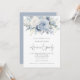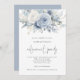 Dusty Blue Florals Script Retraite Partie Invitation. Disponible numériquement et imprimé. Floraux d'aquarelle en Dusty et blues clairs. Personnalisez facilement le texte selon vos besoins.