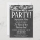 Une amusante invitation à la fête d'entreprise en tableau noir et blanc avec des lumières brillantes au sommet.