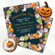 Super Fun Halloween Cookie Party Invitation avec un grand assortiment de cookies déplaisants. Citrouille de biscuits à sucre, squelette de pain d'épices, fantômes amicaux, chat noir, casquette de sorcière, tête de monstre, toile d'araignée, maïs-bonbons et autres biscuits cuits entourent vos informations de fête. Idéal pour une fête d'halloween pour enfants ou adultes. Illustration tirée à la main par McBooboo.
