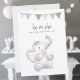 Un design moderne adorable avec un bébé éléphant avec une bannière de drapeau gris/marron en haut où "il ou elle sera notre arachide?" est intitulé. A l'envers, nos modèles d'invitation, la verdure et la baguette avec des bulles qui coulent.