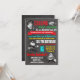 Appelle tous les flics et les voleurs ! Super cool retro inspiré invitation de fête d'anniversaire avec vieux clip art Police homme, voiture de police et voleur avec de grands graphismes sur un arrière - plan de tableau noir.