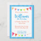 Bandes bleues et pennants - une fabuleuse invitation à la fête d'anniversaire. Idéal pour une plage ou une soirée cirque pour enfants. Entièrement personnalisable avec les détails de votre fête - il suffit d'ajouter le texte pour dire à tout le monde quand et où être!