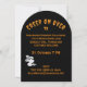 Des citrouilles brillants décorent un côté avec des informations éffrayantes générales sur ce qui attend les clients. A l'autre endroit, date et heure de votre repaire d'Halloween. Un fantôme se forme entre les lignes avant l'information RSVP.