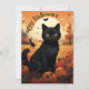 Chat noir tendance et élégant dans un Patch Citrouille Halloween Party Invitation qui peut être personnalisée.