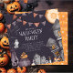 L'invitation d'Halloween comporte un fantôme, une maison hantée, un balai de sorcières, une tombe et un chaudron de sorcière. Les mots "fête d'Halloween" sont écrits dans une police amusante et festive. C'est la meilleure façon d'invitation vos amis à une fête d'Halloween éffrayante et sucrée.