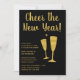 "Cheer the Nouvel An" en or noir fantaisie script de typographie brossé Nouvel An invitation de fête de la veille avec deux grandes flûtes de champagne de parties scintillant dorée et éclaboussures d'or. — Veuillez noter que la couleur noire est modifiable. Vous pouvez le modifier après avoir sélectionné l'option CUSTOMISER plus loin. Personnalisez-le avec vos détails et avec l'année à l'avant et à l'arrière.