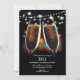 Toasts de la nouvelle année avec ces jolies lunettes de champagne et lumières scintillantes de Noël en arrière - plan. Personnalisez la carte avec vos propres détails de célébration.
