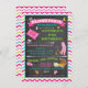 Super mignon, fête en pyjama avec plumes, coussin, musique, pjs, pizza, pop-corn et vernis à ongles sur un arrière - plan de tableau noir et chevron. Parfait pour une fête de sommeil d'une fille ! Illustration tirée à la main par McBooboos.