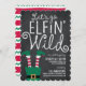Allons à Elfin' Wild avec cette invitation de Fête de Vacances de Sarah Hawkins Designs. Le design est composé d'un arrière - plan en damier avec un petit elfe mignon dans un coin.