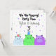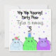 Une invitation à l'anniversaire mignonne avec trois hippopotames colorés prêts à faire la fête !