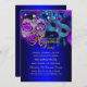 Invitation Masquerade Anniversaire. Invitation de Mardi Gras. Invitation Masquerade Party. Elégants masques en plumes violettes et bleues.