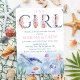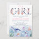 Mignonne C'est une fille sous l'invitation du baby shower de mer avec une baleine d'aquarelle, tortue de mer, méduse, poulpe, poisson rouge, coquillages et plantes de corail.