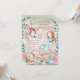 Une invitation pour la fête des enfants peinte à l'aquarelle avec un lapin qui verse du thé et votre hôte avec son animal de compagnie flamingo et une vigne remplie de pâtisseries et de tasses d'attente pour que les invités arrivent à la fête.
