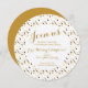 Un design charmant, présenté en forme circulaire découpée, qui fait une invitation à Noël ou à la fête. Dans de nombreuses nuances d'or et présenté sur une option de papier métallique, cette invitation est sûr de préparer le terrain pour votre merveilleux rassemblement cette saison.