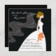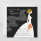Commencez votre évènement avec notre belle silhouette de robe blanche et voile flottant sur un arrière - plan noir aux accents de rose corallien.Invitation à la douche nuptiale. customisez simplement notre invitation avec vos informations mariages et vous êtes tous prêts à partir.