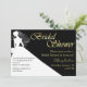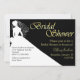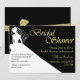 Elégante invitation à la douche nuptiale faite en noir et blanc, avec une silhouette blanche d'une mariée contre un arrière - plan noir. Le texte du graphique en couleur or lit la Fête des mariées. Tout le texte ci-dessous en jaune or et noir est prêt à se personnaliser pour votre événement nuptial. Jolie invitation la mariée chérira avec tous ses mariages.
