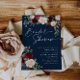 Boho Navy Bourgogne et Blush Floral Bridal Shower Invitation. Cette invitation est caractérisée par des roses boho bordeaux et rougis et des fleurs avec deux polices de haute classe modernes qui façonnent les tendances des événements festifs actuels et futurs.