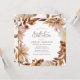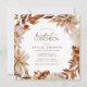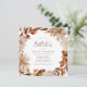 Déjeuner nuptial d'automne Invitation. Ces élégantes invitations carrés pour le déjeuner comprennent des feuilles d'eau couleur orange brûlée et en terre cuite peints à la main, des dahlias crème et beige, et de beaux roses couleur rouille sur un arrière - plan blanc. Trouvez les articles correspondants dans la collection White Autumn Romance.