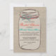 Cette invitation rustique à la douche nuptiale présente un arrière - plan à l'allure de burlap avec un contour de bocal de mason attaché avec un corail et un ruban turquoise. Idéal pour une douche nuptiale rustique, vintage ou à thème champêtre.