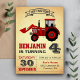Éblouissez vos invités avec cet invitation de fête d'anniversaire cool avec un beau tracteur de ferme rouge avec typographie moderne contre un arrière - plan de parchemin vintage. Ajoutez simplement les détails de votre événement sur ce modèle facile à utiliser pour en faire une invitation unique. Retournez la carte pour révéler une texture rustique en bois de grange au dos de la carte.
