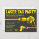 Éblouissez vos invités avec cet invitation de fête d'anniversaire amusant avec des pistolets laser cool et une typographie vibrante contre un arrière - plan gris foncé. Ajoutez simplement les détails de votre événement sur ce modèle facile à utiliser pour en faire une invitation unique.