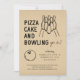 Invitation de la partie de bowling de frère - "Pizza. Gâteau. Et Bowling." Mettez en évidence les choses importantes pour la fête d'anniversaire de vos frères et soeurs. Graphiques dessinés à la main dans un design amusant. Cool suffisant pour votre adolescent et toujours approprié pour un jeune garçon ou une jeune fille.