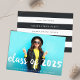 Une faire-part de remise de diplômes simple et moderne et une invitation à la fête placent votre portrait principal ou photo de graduation favori devant et au centre. La conception de fond saigné complète présente "classe de 2025" comme un texte blanc superposé dans la typographie de style manuscrit en lettres de style, avec votre nom et l'école en dessous. Personnalisez l'arrière rayé avec vos détails de remise de diplômes ou de célébration.