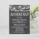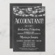 Une amusante invitation de fin d'études de comptable en tableau noir et blanc avec des lumières brillantes en haut.