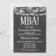 Une amusante invitation à la soirée de remise de diplômes MBA en tableau noir et blanc avec des lumières brillantes au sommet.