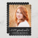 Carte photo moderne branché invitant votre famille et vos amis à la fête de remise de diplômes de votre fille. Simple Vertical Chalkboard Graduation Party Conception d'invitation pour les diplômés de 2014. Design par Elke Clarke © Visitez notre boutique www.zazzle.com/monogramgallery* pour plus de design et de styles. Ajoutez votre propre photo et texte. Une simple typographie blanche manuscrite texte de police de script sur un arrière - plan de tableau noir (effet photo imprimé) avec les mots "Graduate 2014". Remplacez l'exemple de photo par le vôtre. Couleurs noir et blanc. Autres styles et couleurs disponibles.