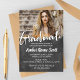 Notre Invitation de la fête de graduation Chalkboard est une façon amusante et créative d'invitation vos amis et votre famille à votre prochaine fête de graduation du lycée ou de l'université. Cette invitation comporte un arrière - plan de tableau noir avec des polices de caractères fantaisistes modernes.