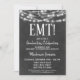 Une amusante invitation à la fête de remise de diplômes EMT en noir et blanc avec des lumières brillantes en haut.