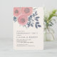 Les invitations modernes aux fêtes florales comportent un amas de fleurs de pavot d'aquarelle qui descendent du coin supérieur gauche. Les tons chics de rose pâle, bleu marine fumé et vert chasseur défraîchi sont frais et beaux pour votre événement de printemps ou d'été. Ajoutez les détails de votre fiançailles en lettres bleues et grises modernes de minuit contre un arrière - plan en ivoire pâle. La carte revient à bleu nuit. Magasinez les articles correspondants de notre collection Peach Poppies présentée sur cette page.