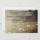 Invités Invitations à une célébration rendant hommage à la mariée et au marié pour être avec la charmante Invitation Patinée de la fête de l'engagement dans la campagne de la grange. Cet invitation rustique chic et personnalisé de la fête de fiançailles à thème de ranch rural présente une photo de ferme pittoresque d'une vieille grange en bois avec de grands arbres verts dans l'arrière - plan et un champ de fleurs sauvages blancs de dentelle de la reine Anne au premier plan.