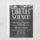 Une amusante invitation à la remise des diplômes scientifiques en tableau noir et blanc avec des lumières brillantes au sommet.