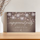 Nos invitations rustiques et élégantes à des fiançailles comprennent un arrière - plan kraft foncé avec des cordes de lumières blanches et des lanternes lumineuses en papier sur le dessus, et "fiançailles" dans la typographie de script de calligraphie chic. Personnalisez avec vos détails de célébration fiançailles sous en lettres blanches.