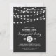 Design chic et moderne d'invitation à la fête mariage d'été avec des lampes à cordes élégantes et simples accrochées au sommet et un mélange élégant de polices de script modernes et de calligraphie. Un design simple et élégant, parfait pour l'été ! Cliquez sur le bouton CUSTOMISER IT pour customiser les polices, déplacer du texte et créer votre propre conception unique d'invitation unique.