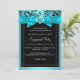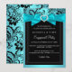 Invitation de la partie d'engagement. Arc turquoise avec coeur bijou et design floral noir. VEUILLEZ NOTER toutes les images plates ! Ils n'ont pas de vrais vaches, diamants ou bijoux! !