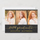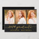 carte photo de collage manuscrit invitant votre famille et vos amis à la fête de remise de diplômes de votre fille. Invitation de la Simple Collage Parties scintillant Graduation Party pour 2014. Design par Elke Clarke © Visitez notre boutique www.zazzle.com/monogramgallery* pour plus de design et de styles. Une simple typographie en feuille d'or manuscrite de texte de police de script écrit superpose sur un arrière - plan de parties scintillant noir (effet photo imprimé) avec les mots "Graduate 2014" avec une conception de trois collages photo. Remplacez les photos par les vôtres. Couleurs noir et or.