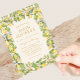 Invitation vos invités à une fête radieuse avec cette exquise invitation de douche nuptiale de la collection "Main Squeeze". Chaque invitation présente un cadre délicat de citrons peints à la main, une végétation luxuriante et des fleurs de citrons doux sur un élégant arrière - plan en ivoire, complétés par un texte doré sophistiqué. L'envers poursuit le thème avec un motif assorti, créant un look harmonieux et accueillant qui ouvre la voie à une rencontre mémorable d'inspiration méditerranéenne.