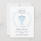 Cet invitation moderne de la Première Sainte Communion dispose d'une élégante couronne de fleurs bleues à l'aquarelle ainsi que d'une croix bleue. Idéal pour la célébration religieuse d'un garçon, il peut être customisé avec le nom de votre enfant et les détails de l'événement.