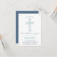 Cet invitation moderne de la première sainte communion présente une élégante croix florale bleue et verte dessinée. Idéal pour la célébration religieuse d'un garçon, il peut être customisé avec le nom de votre enfant et les détails de l'événement. La couleur arrière - plan peut également être changée à votre goût.