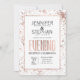 Elégant, chic et moderne, imitation rose d'or contrecarrement et de peinture éclaboussures, invitations à la réception du soir. Ce design classique et sophistiqué convient parfaitement au couple marié branché et élégant. Personnalisez-vous avec votre propre message sur le devant ainsi qu'un monogramme customisé sur le dos. Toute la conception d'impression photo.